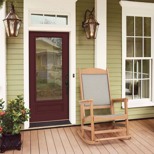 Poly Lumber Plastic Outdoor Rocking Chair with High-Strength Textilene Backrest and Seat, Heavy Duty 380 lbs. Teak Tone