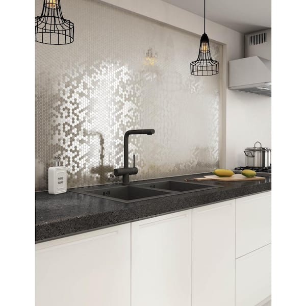 Take Home Sample - Hexagonia S2 Stainless Steel 4 in. x 4 in. Metal Peel and Stick Wall Mosaic Tile (0.11 sq.ft.)