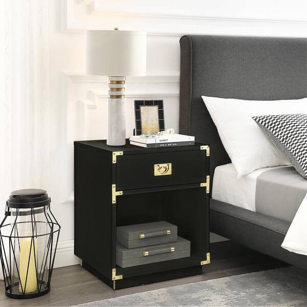 Odrini Modern Black/Gold End Table Metal Corner Brackets Knob Nightstand