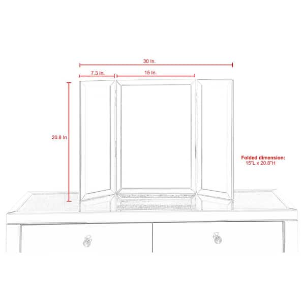 Sylvia 1 in.W x 20.8 in.H Small Rectangular Trifold Tabletop Makeup Mirror in Clear