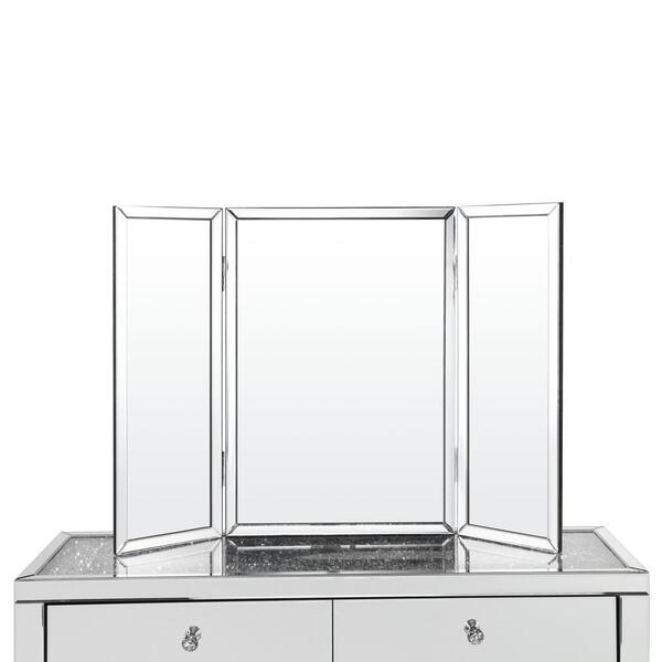 Sylvia 1 in.W x 27.5 in.H Small Rectangular Trifold Tabletop Makeup Mirror in White