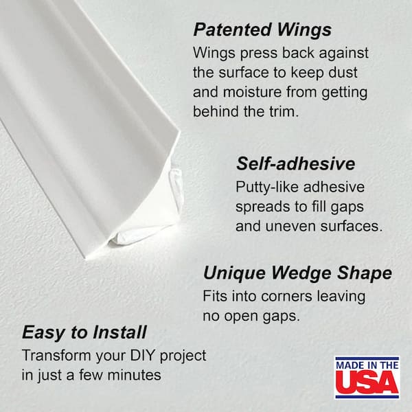 3/4 in. x 50 ft. White PVC Inside Corner Self-adhesive Flexible Caulk and Trim Molding