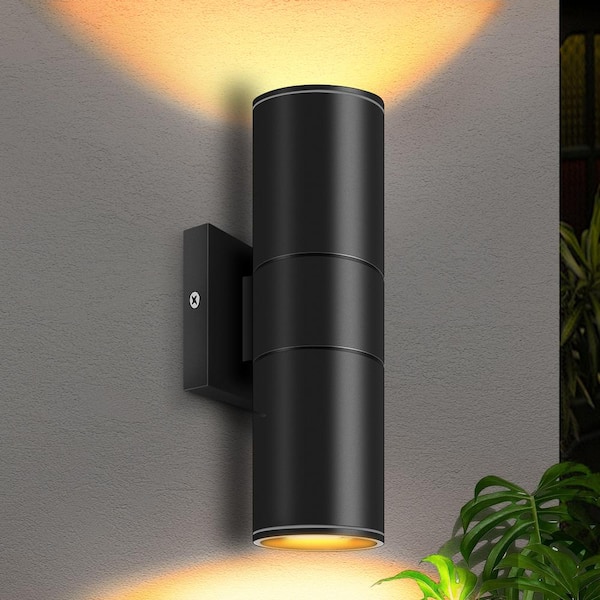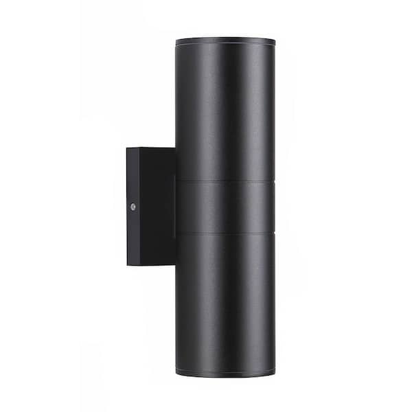 Integrated LED Black Outdoor Hardwired Cylinder Wall Light Lantern Sconce with Up Down Lights (1-Pack)