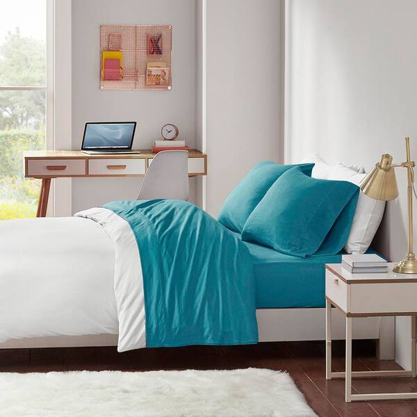 Cotton Blend Jersey Knit 3-Piece Teal Cotton Blend Twin All Season Sheet Set