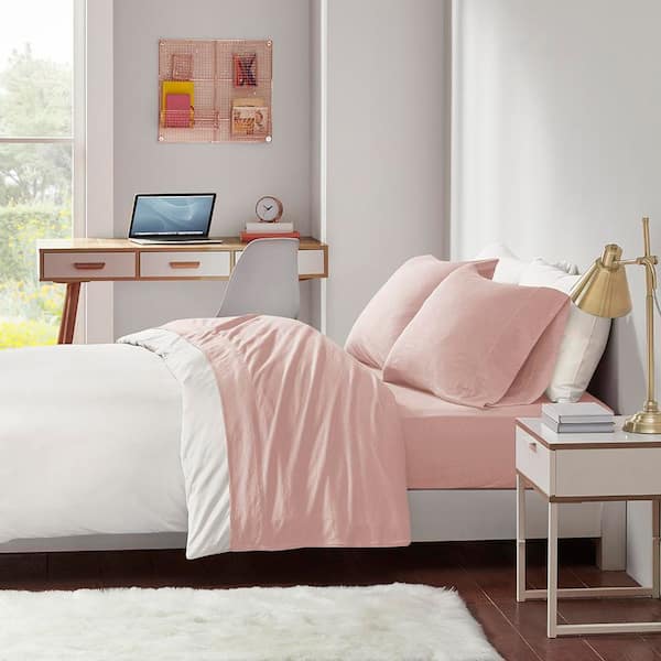 Cotton Blend Jersey Knit 4-Piece Blush Cotton Blend Full All Season Sheet Set