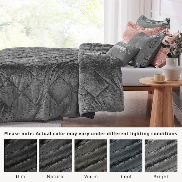 Isabel (3-Piece) Grey Polyester Twin/Twin XL Velvet Comforter Set with Throw Pillow