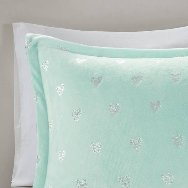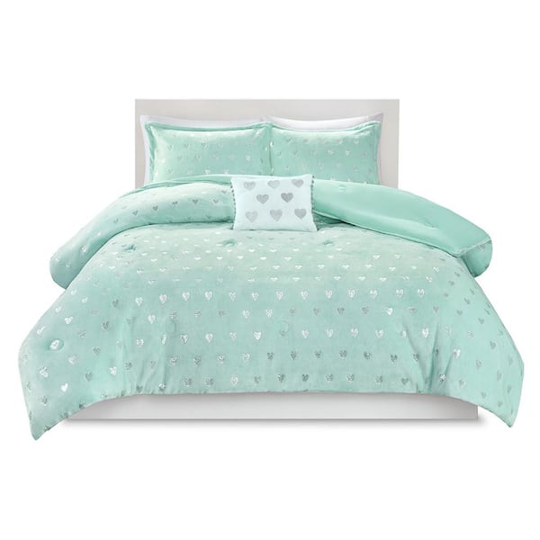 Jenna 3-Piece Aqua/Silver Twin/Twin XL Metallic Printed Plush Comforter Set
