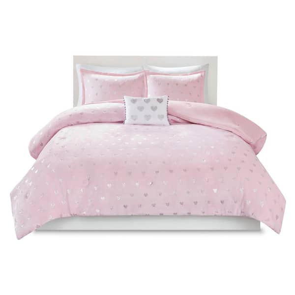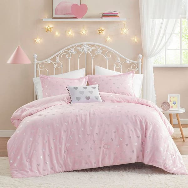 Jenna 3-Piece Pink/Silver Twin/Twin XL Metallic Printed Plush Comforter Set