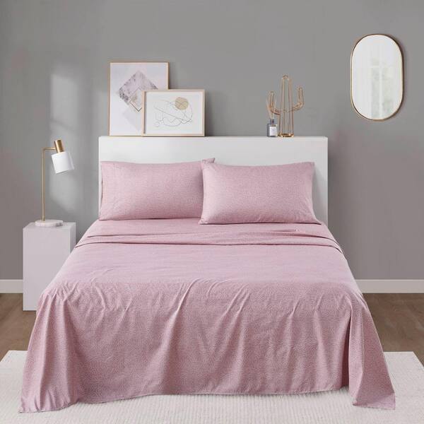 Printed 4-Piece Blush Waves Microfiber King Sheet Set