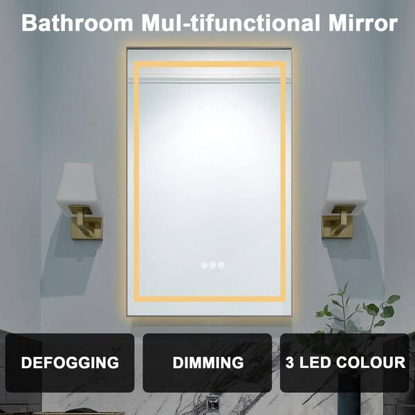 20 in. W x 32 in. H Rectangular Aluminum Framed Backlit and Front Light LED Wall Bathroom Vanity Mirror in Gun Grey