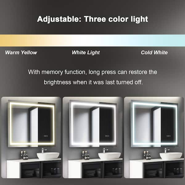 36 in. W x 36 in. H Square Frameless LED Mirror Dimmable Defogging Wall-Mounted Bathroom Vanity Mirror