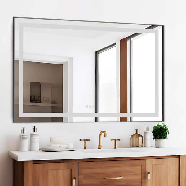 48 in. W x 30 in. H Rectangular Aluminum Framed Backlit and Front Light LED Wall Bathroom Vanity Mirror in Gun Grey