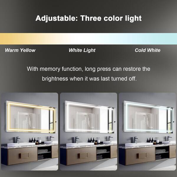 Large Rectangular Frameless LED Mirror 72 in. W x 40 in. H Dimmable Defogging Wall-Mounted Bathroom Vanity Mirror