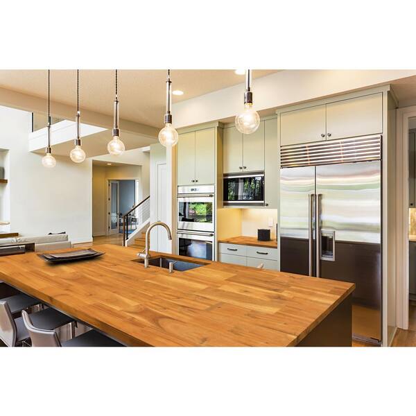 6.2 ft. L x 40 in. D, Acacia Butcher Block Island Countertop in Golden Teak with Square Edge