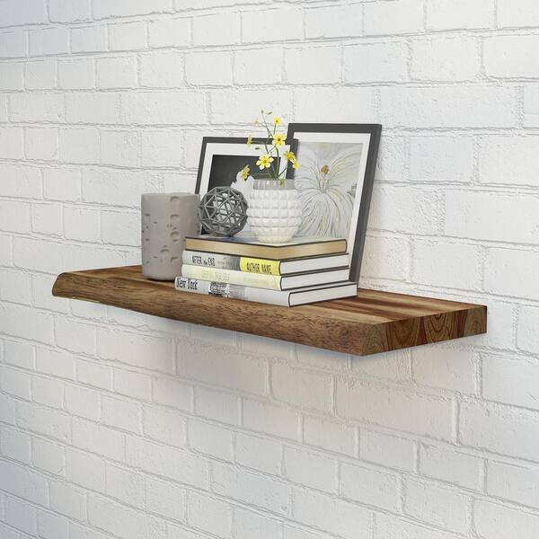 Solid 2.3 ft. L x 10 in. D x 1.5 in. T, Acacia Butcher Block Countertop Floating Wall Shelf, Brown with Live Edge