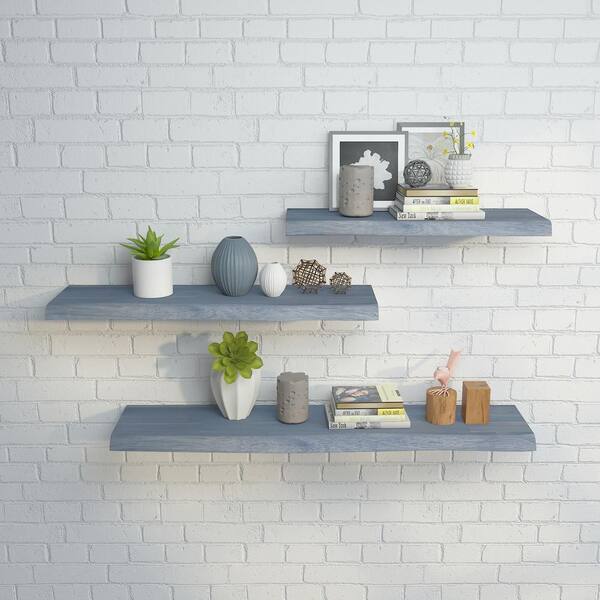 Solid 5 ft. L x 10 in. D x 1.5 in. T, Acacia Butcher Block Countertop Floating Wall Shelf, Dusk Grey with Live Edge