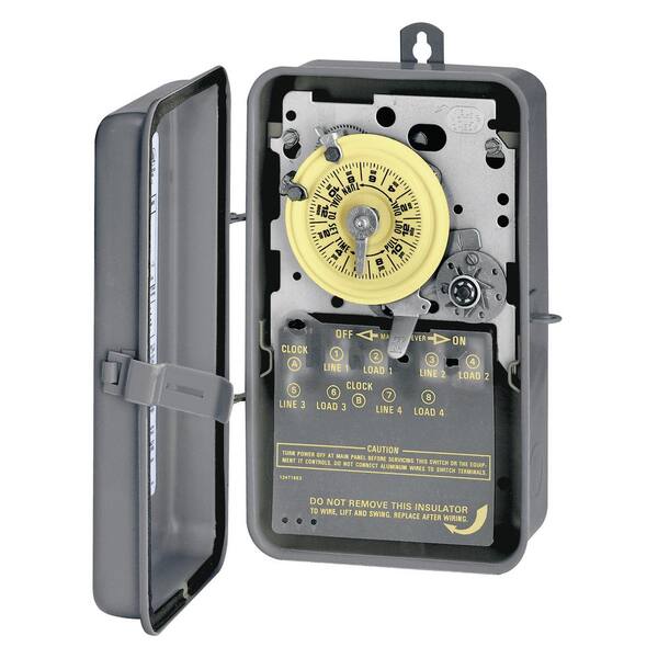 T170 Series 40 Amp 24-Hour Mechanical Time Switch with Skipper - Carryover and Outdoor Enclosure - Gray