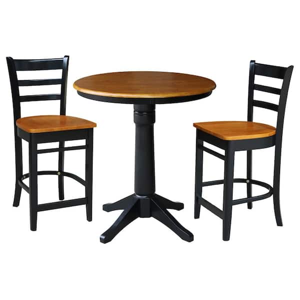 3-Piece 36 in. Cherry/Black Solid Wood Round Table with 2-Side Stools