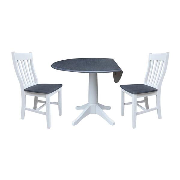 3-Piece White/Heather Gray Kayla 42 in. Solid Wood Drop-leaf Pedestal Dining Table with 2 Gladys Dining Chairs Seats 2