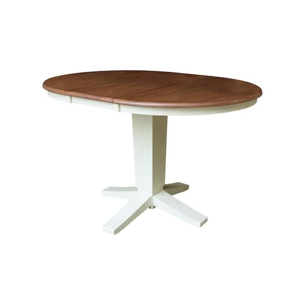 Aria Transitional Hickory/Shell Solid Wood Round Top 48 in. Pedestal Base Dining Table Seats 4