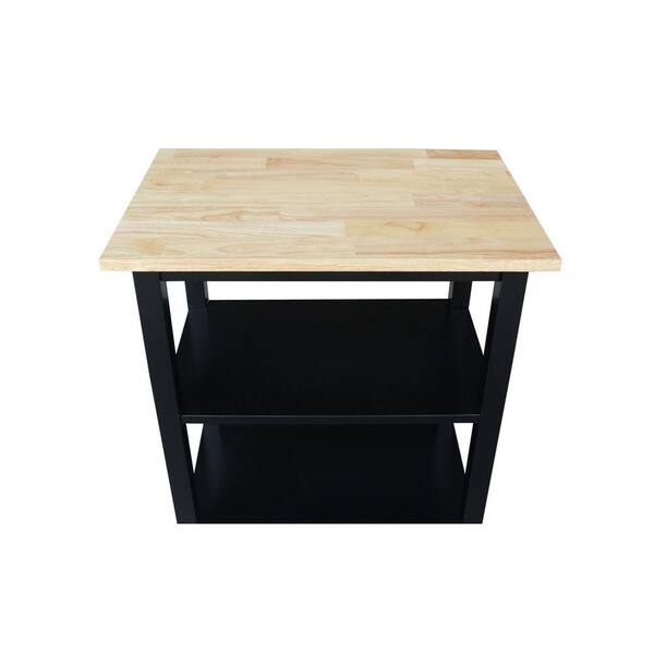 Black Solid Wood Kitchen Cart with Natural Wood Top