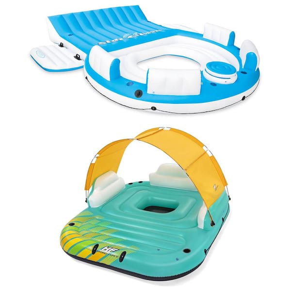 Splash N Chill Blue and White Inflatable Lounger and Hydroforce Multicolor Floating Water Raft