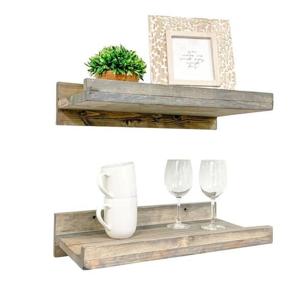 Rustic Luxe 20 in. W x 10 in. D Gray Pine Wood Set of 2 Decorative Wall Shelf