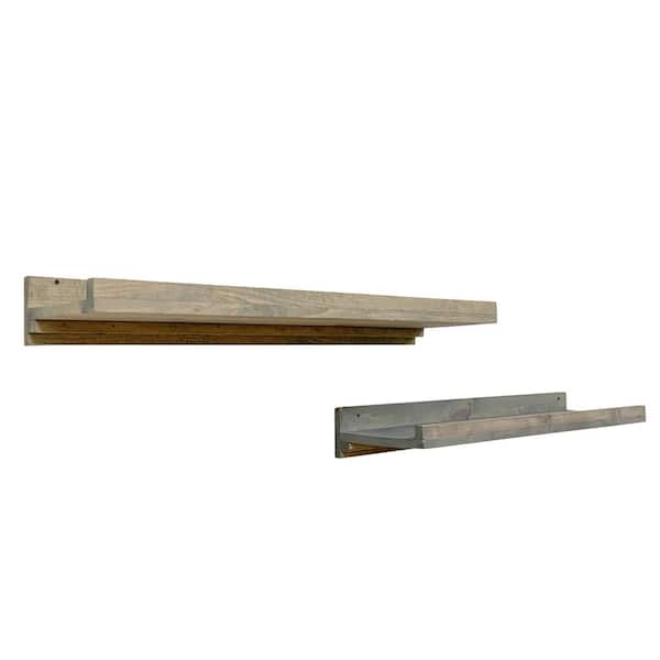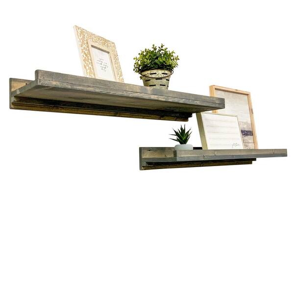 Rustic Luxe 30 in. W x 10 in. D Gray Pine Wood Set of 2 Decorative Wall Shelf