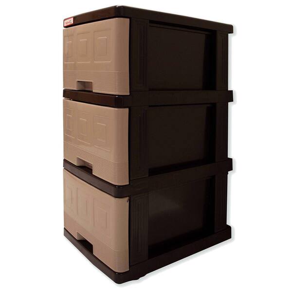 13 in. W x 25 in. H x 17 in. D 3-Drawer Freestanding Cabinet in Taupe with Espresso Frame