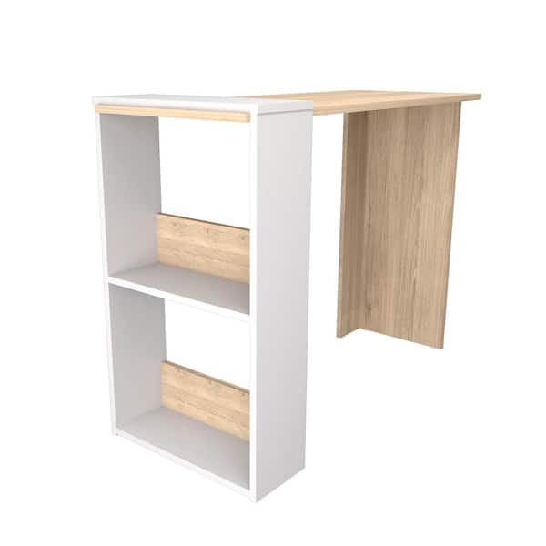 39.37 in. W Rectangular Sandstone and White Wood Computer Desk with Shelves