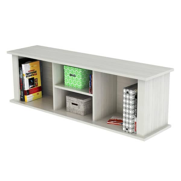 47 in. Rectangular Washed Oak Computer Desks Hutch with Open Storage