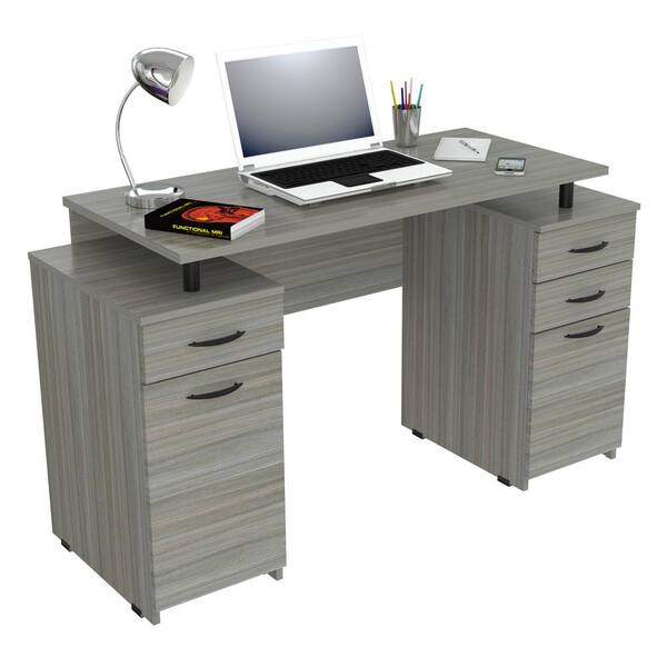 50.79 in. Smoke Oak Rectangular 4 -Drawer Computer Desk with File Storage