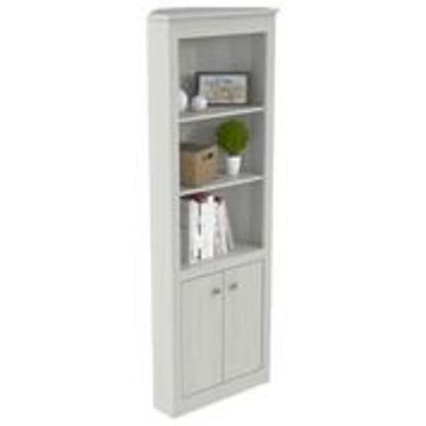 70.02 in. Washed Oak Wood 5-shelf Standard Corner Unit Bookcase with Double Door Storage