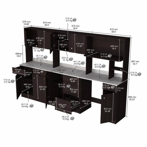Ready to Assemble 108 in. W x 19.69 in. D x 70.87 in. H Wood Breakroom Kitchen Storage Cabinet in Natural Stone/Espresso