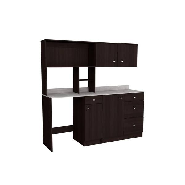 Ready to Assemble 72 in. W x 19.69 in. D x 70.87 in. H Wood Breakroom Kitchen Storage Cabinet in Espresso/Stone Finish