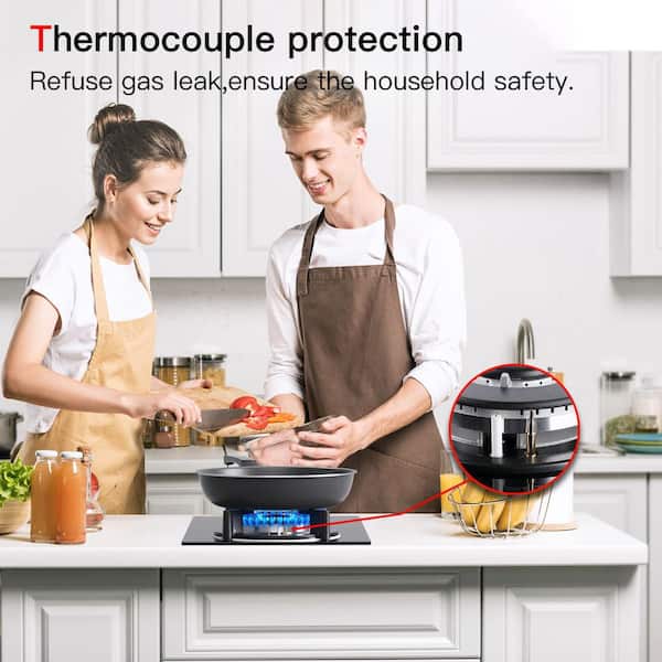 12 in. 2-Burners Gas Cooktop in Black Tempered Glass with Dual Fuel LPG/NG