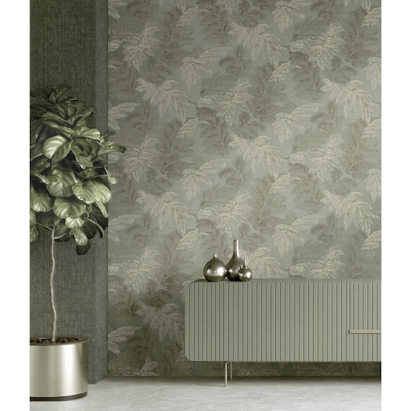 Italian Style Beige Palm Leaf Design Sheen Finish Vinyl on Non-Woven Non-Pasted Wallpaper Roll