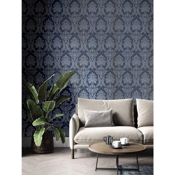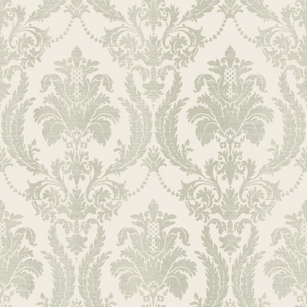 Italian Style Green Classic Floral Damask Luster Finish Vinyl on Non-Woven Non-Pasted Wallpaper Roll