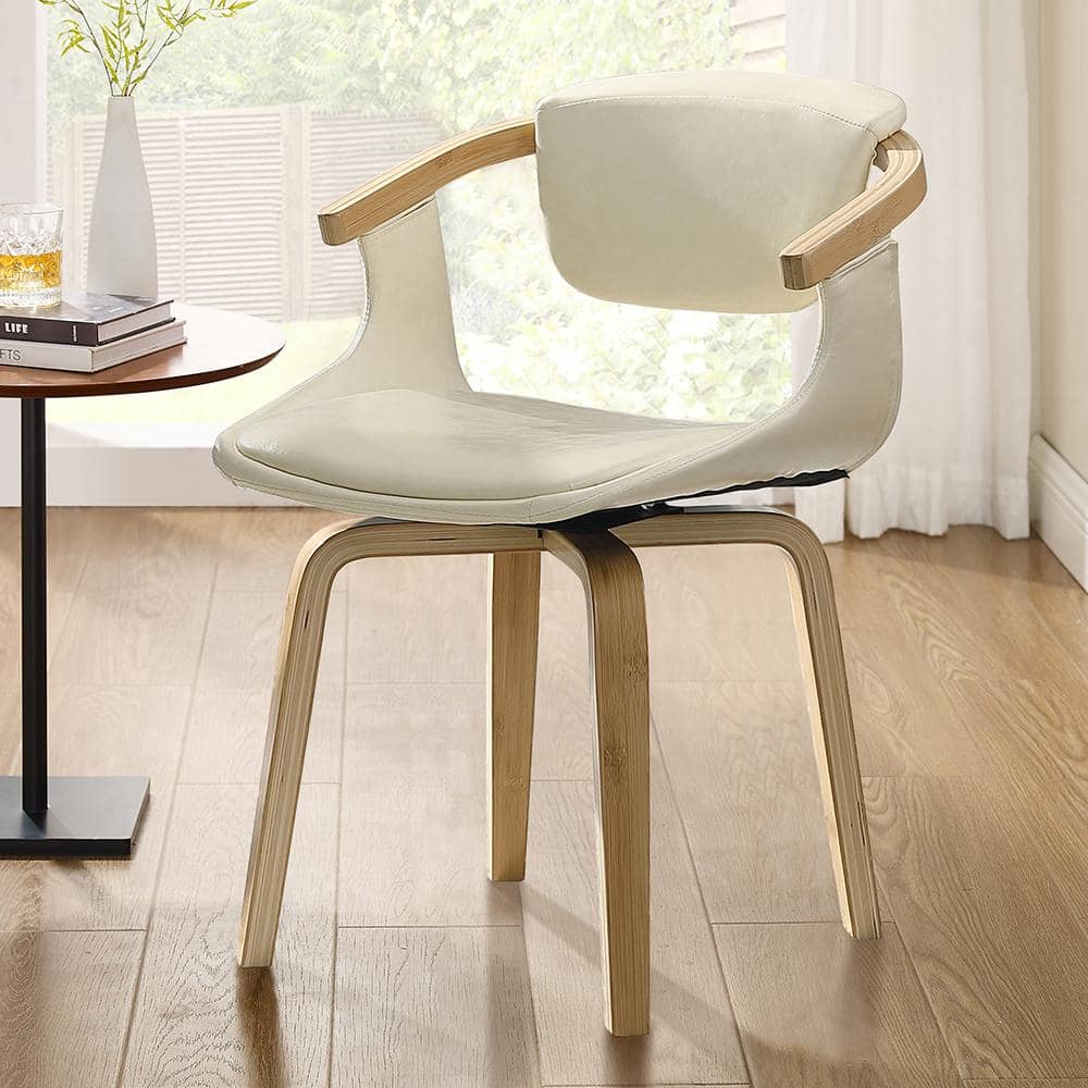 Iva Off White Faux Leather Swivel Arm Chair with 4 Wood Legs