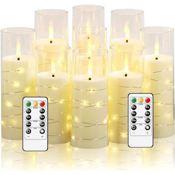 Ivory Flickering Flameless LED Candles, Battery Operated Candles with Embedded Star String 9-Pack