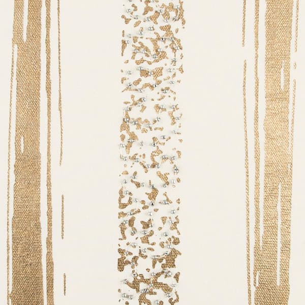 Ivory/Gold Striped Printed Foil Seed Beaded Embellishments Cotton Poly Filled 20 in. x 20 in. Decorative Throw Pillow