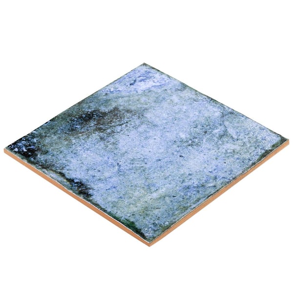 Angela Harris Blue 4 in. x 0.39 in. Polished Ceramic Wall Tile Sample