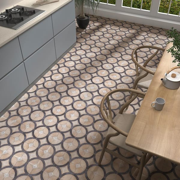 • Versatile roman mosaic-inspired durable matte porcelain tile