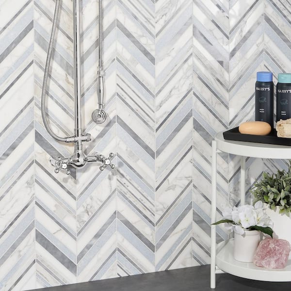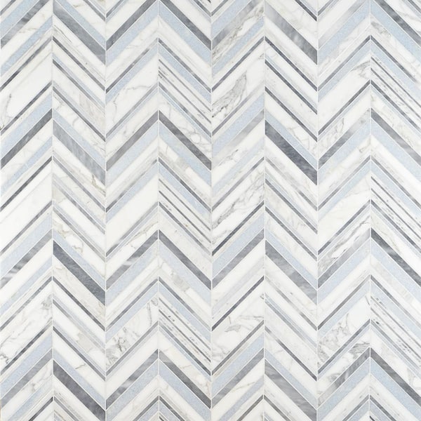 Auburn Blue 4 in. x 0.39 in. Polished Marble Floor and Wall Mosaic Tile Sample