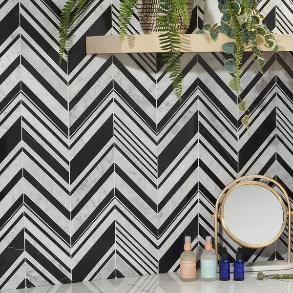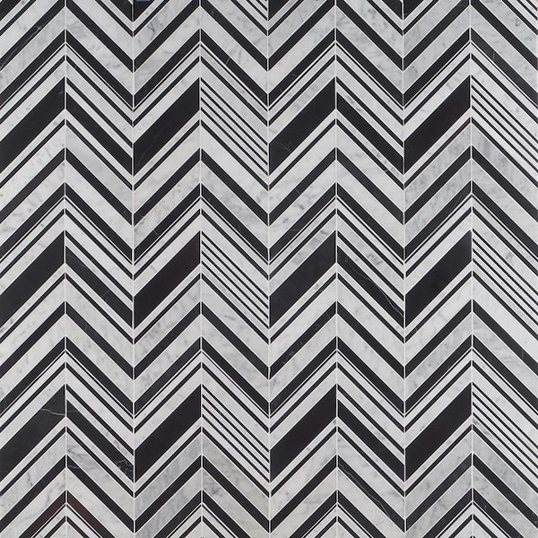Auburn Nero 4 in. x 0.39 in. Polished Marble Floor and Wall Mosaic Tile Sample