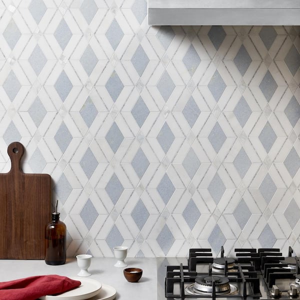 Benes Blue Celeste 2.5 in. x 0.39 in. Polished Marble and Pearl Wall Mosaic Tile Sample