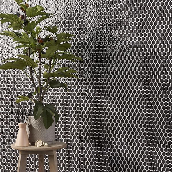 Bliss Edged Hexagon Charcoal 10.03 in. x 11.61 in. Polished Porcelain Floor and Wall Mosaic Tile (0.80 Sq. Ft./Each)