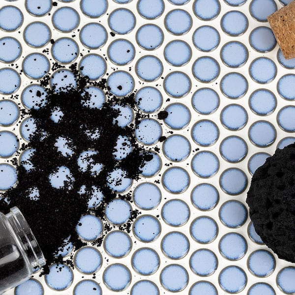 Bliss Edged Penny Azure 3 in. x 0.24 in. Polished Porcelain Floor and Wall Mosaic Tile Sample