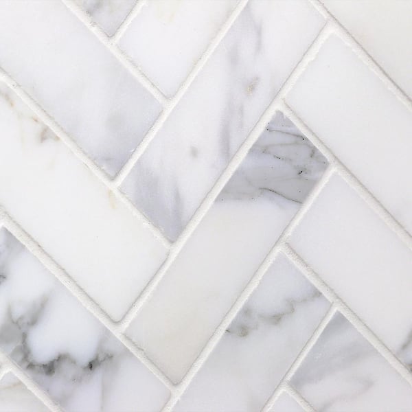 Calacatta Herringbone 3 in. x 6 in. x 10.5 mm Marble Mosaic Tile Sample