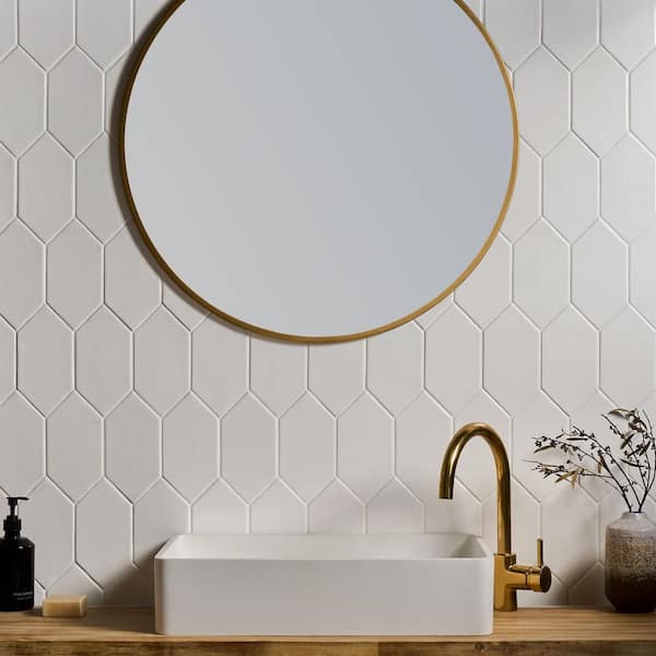 Casablanca Blanco White 3.93 in. x 0.39 in. Picket Glossy Porcelain Floor and Wall Tile Sample